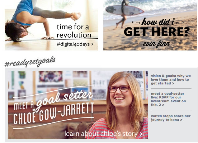 Recently LuLuLemon sent out a campaign email that demonstrates this attention to building and maintaining a community around a brand. The email doesn’t just lead you to shop the latest products; It adds value to the customer experience by connecting you with blog posts and inviting you to learn more about getting the results you desire, including “ready, set, goals,” a link featuring tips for realizing your own vision.